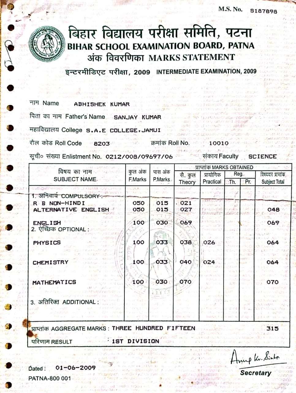 | Exam | Full Marks | Pass Marks | Marks Obtained |