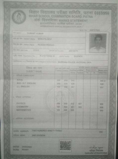 | Exam | Full Marks | Pass Marks | Marks Obtained |