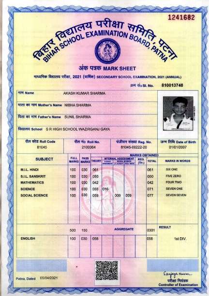 | Exam | Full Marks | Pass Marks | Marks Obtained |