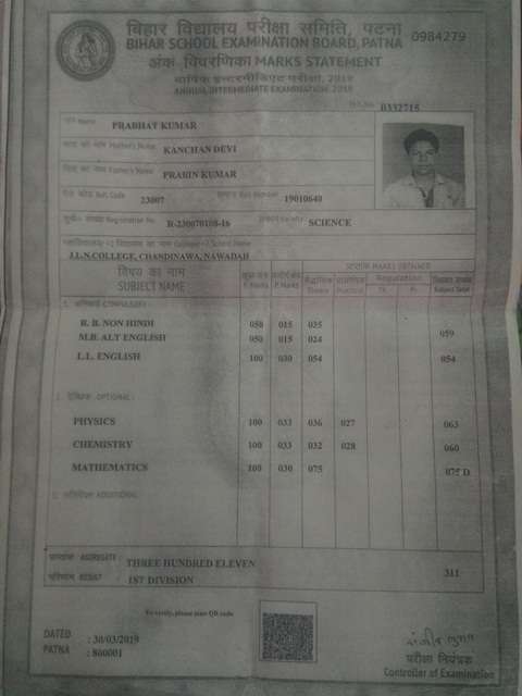 | Exam | Full Marks | Pass Marks | Marks Obtained |