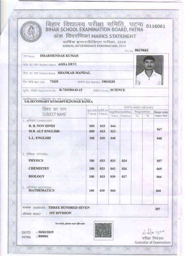 | Exam | Full Marks | Pass Marks | Marks Obtained |